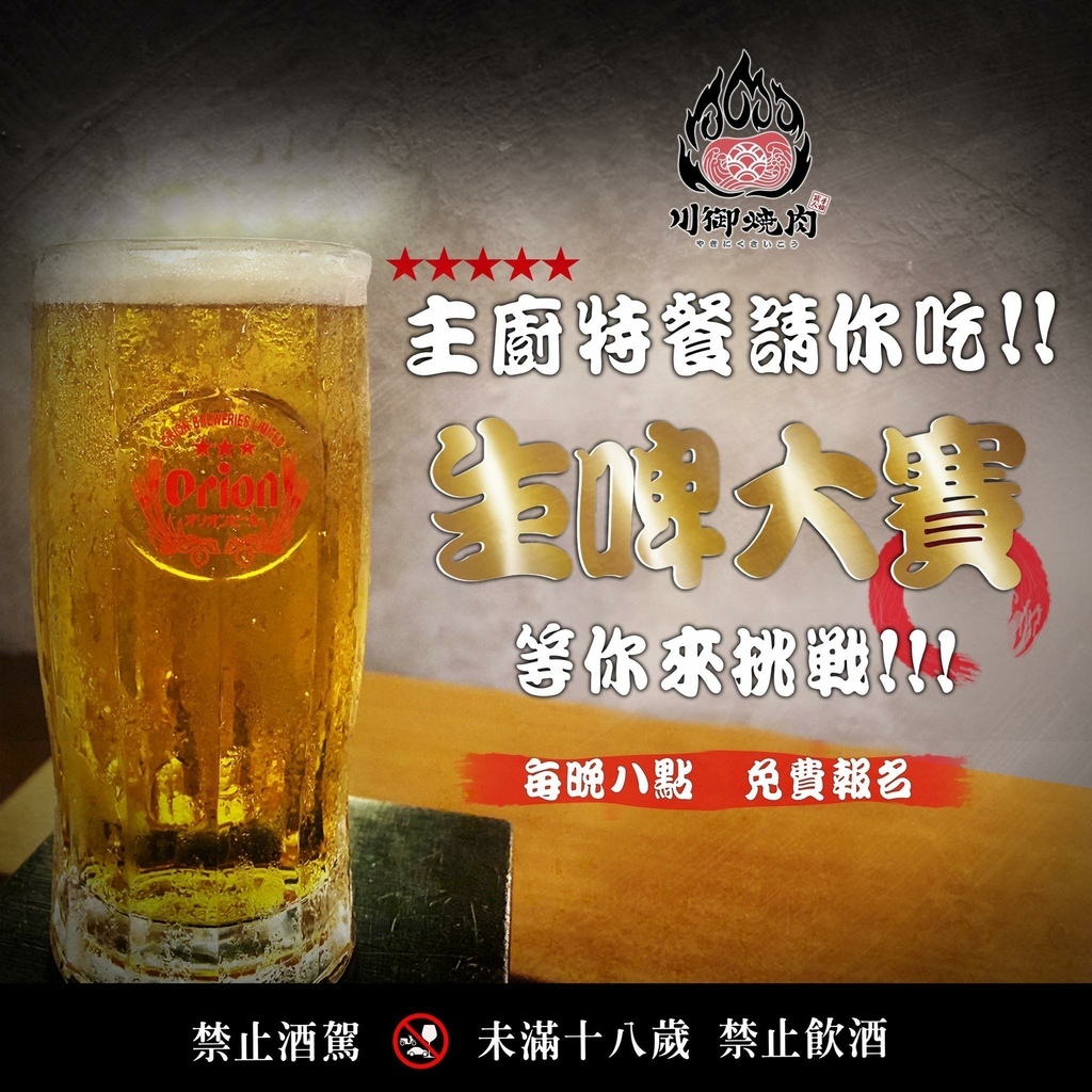 每天晚上八點,免費報名生啤大賽,主廚特餐請你吃!