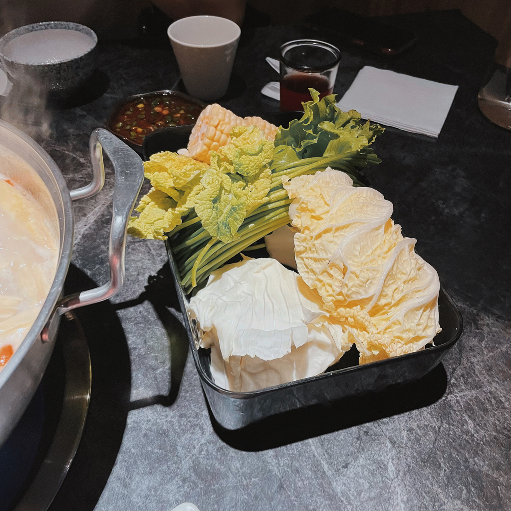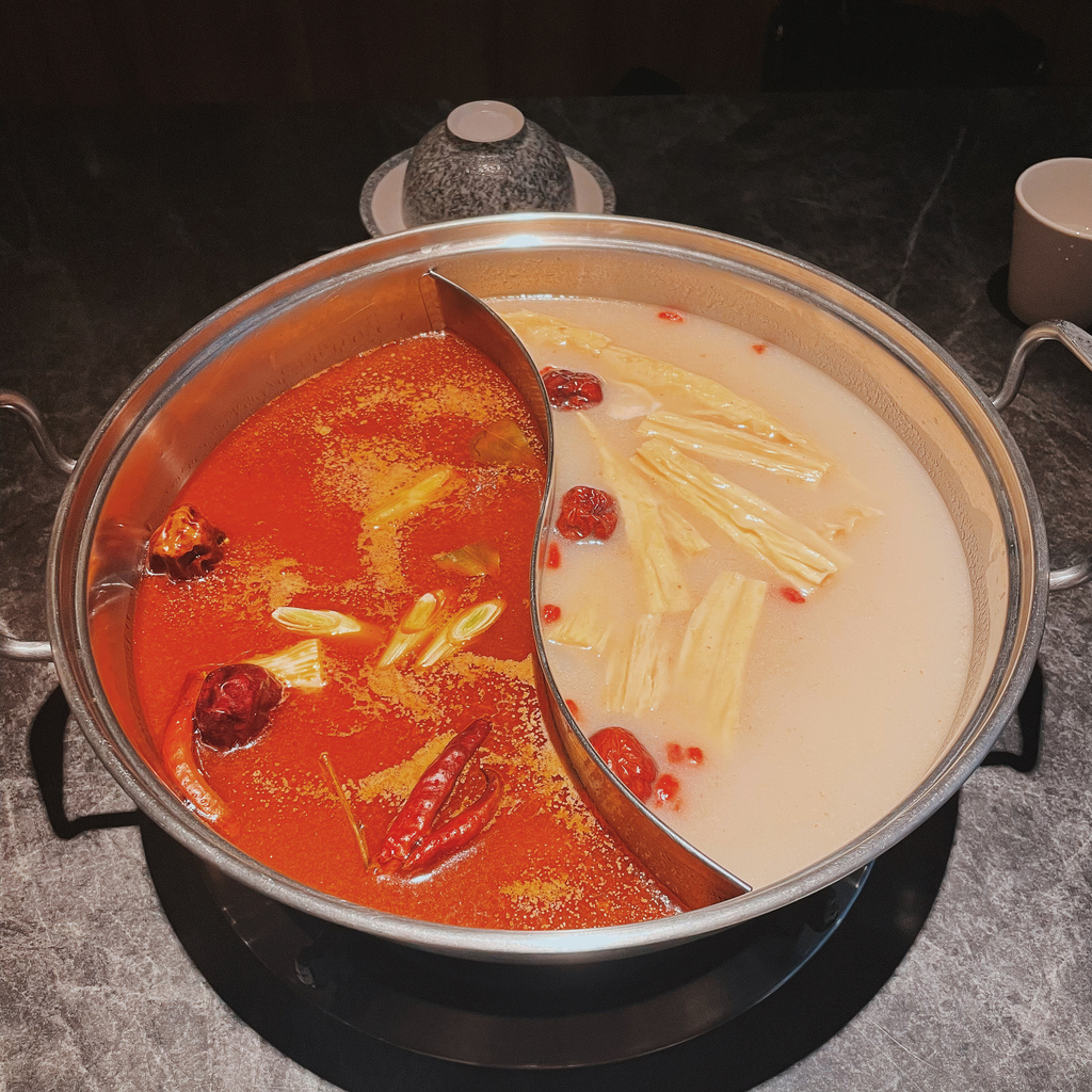 鴛鴦鍋一樣的點法,基本都是麻辣配老火啦,來之前有看過別人的介紹,牛奶也很好吃很適合有小朋友的家庭點,但我們主要是麻辣跟老火,剩下的配料就也都是單點的