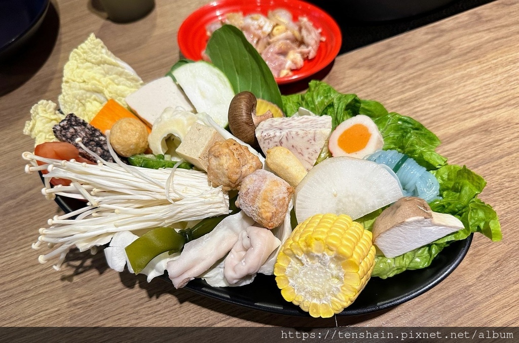 趁著店員炒鍋的時候,老婆去拿了一些蔬食吧的蔬菜和火鍋料,每種都只拿一個,就滿滿一大盤。每一種蔬菜都鮮翠欲滴,賞心悅目的大菜盤,令人食指大動。