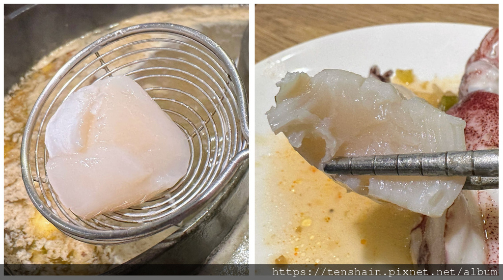生食級大干貝稍煮即可,保持外熟內嫩的口感最迷人!自然甘甜,毫無腥味,軟嫩如冰淇淋,想體會什麼叫「鮮」?吃這個就對了!