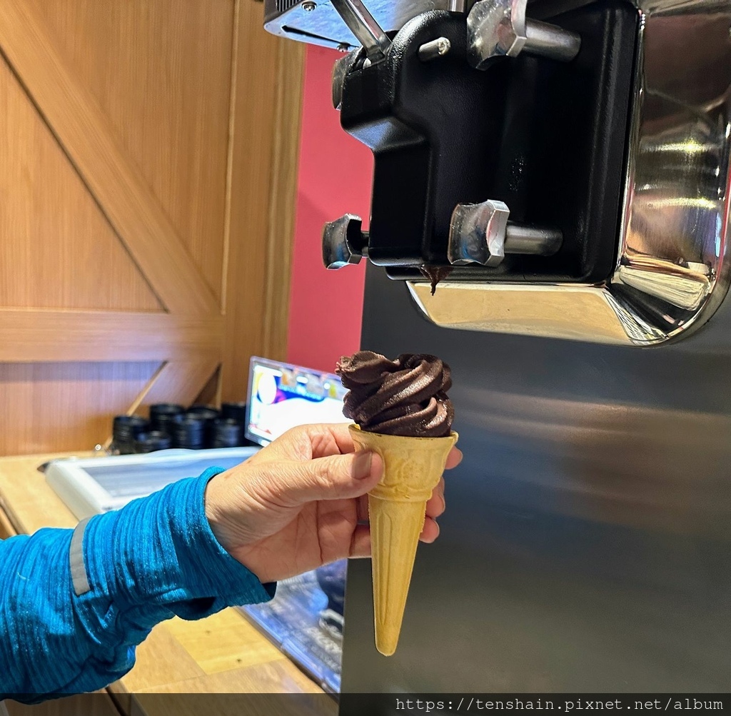 今天的霜淇淋口味正是我愛的巧克力,濃郁的香氣、綿密的口感,非常好吃!