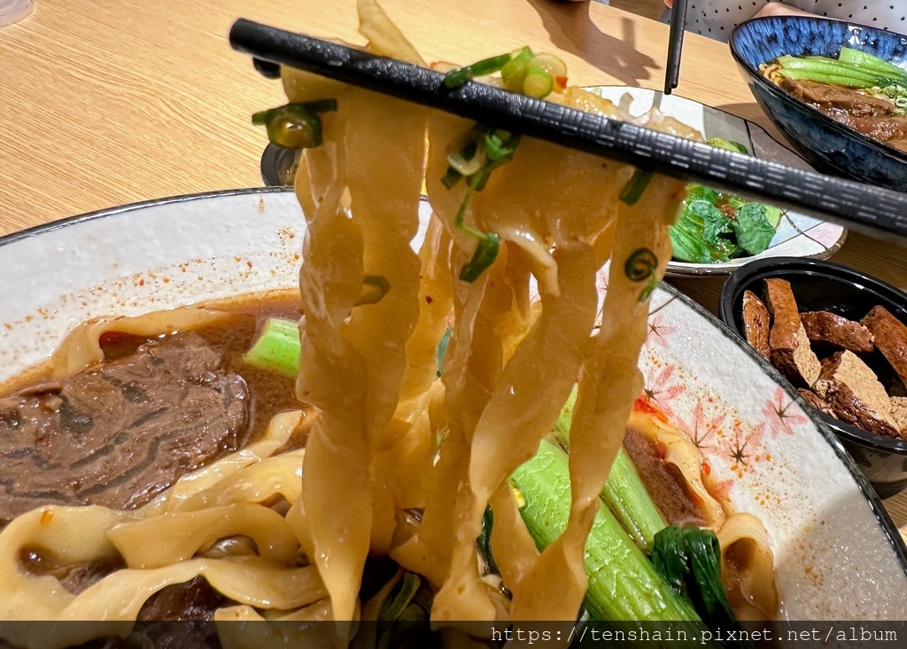 「集英會牛肉麵館」的麵條,如果您在點餐的時候,沒有特別勾選"換細麵",店家都是預設以"寬麵"出餐,不習慣寬麵的朋友要特別注意!這裡的寬麵,口感類似刀削麵,咬勁特別強,需要咀嚼比較久的時間,所以適合搭配濃湯,和濃稠的川味牛肉湯,簡直就是天作之合。辣香、麻香和麵香,同時在口腔中綻放,層次豐富耐人尋味。