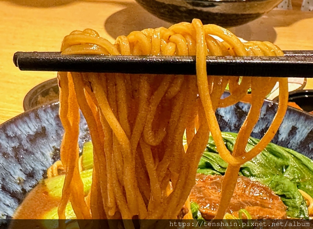 老婆喜歡寬麵,我喜歡細麵,因為細麵雖然咬勁不如寬麵,但好處是容易吸收湯汁。吸飽湯汁的麵條,吃起來軟滑無比,味道也更加濃郁,彷彿有吃麵線的錯覺。