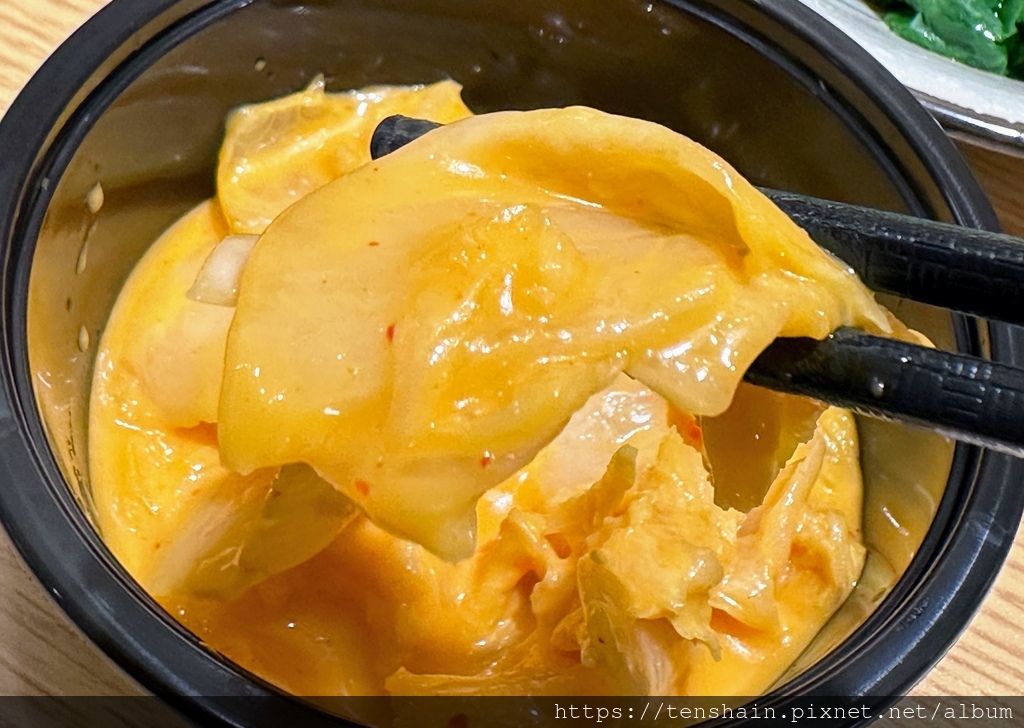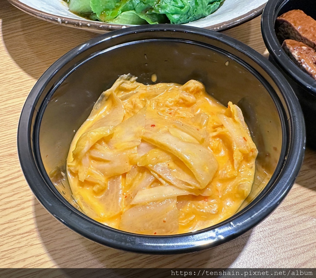 泡菜對腸胃有許多健康益處而且又好吃,所以看到菜單的小菜中有黃金泡菜,我不假思索立馬點了一份。