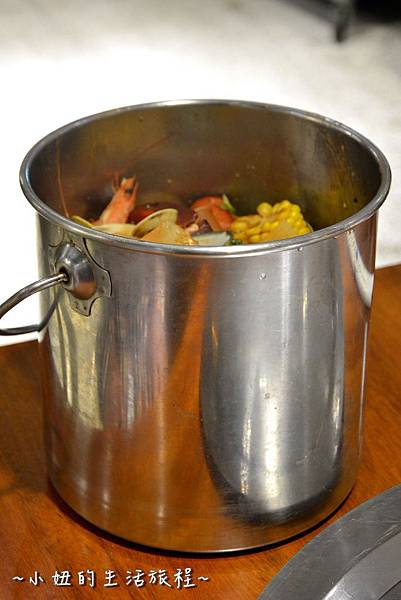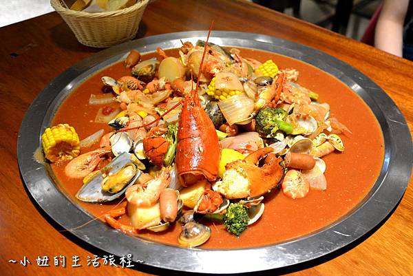 菜單,妞媽點了$1960的波士頓龍蝦大水桶海鮮套餐,裡面有:波士頓龍蝦1隻、沙蝦1份、孔雀蛤1份、海瓜子1份、蔬菜拼盤1份(含馬鈴薯+玉米+花椰菜+德式香腸),還有無限量可續點的麵包,玉米濃湯或飲料無限暢飲(2選1),口味可選擇茄汁(辣或不辣)、咖哩或酸辣四種,妞媽選擇茄汁,裡面會有微微的胡椒味