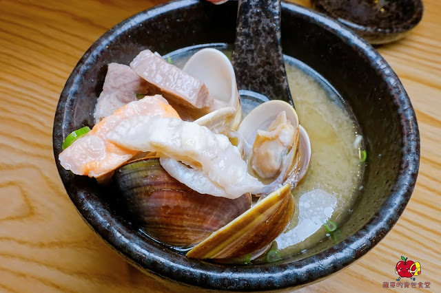 $990套餐的蛤蠣會多一些 除了蛤蠣外 還有魚肉跟豬肉在味噌湯裡 料多味美 蛤蠣很飽滿肉多又沒有砂