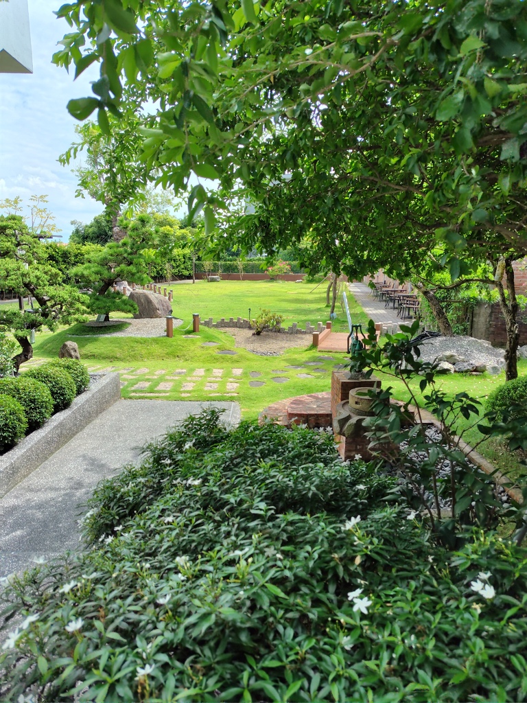 愛蜂園的後院佈置相當舒適又雅緻,好像世外桃源一樣別有洞天,讓人置身在綠意草坪中可以放鬆身心度過愉快的下午。