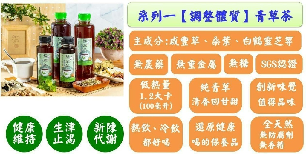 傳承、回憶,已故母親之名,誠意滿滿,從小到大,對家人健康守護,以家傳之50年黃金養生配方,不加糖獨特的青草甜,好喝之關愛,創辦人分享這份母愛,讓每個客戶,都能夠還原健康,品牌之初衷,就是要讓客戶喝到職人級天然青草茶(鮮草茶),相信能帶來人們,健康、養生、幸福的感動。