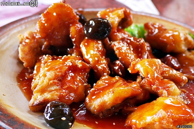 梅汁鮮魚片,類似橙汁排骨的做法,魚片口感有點像雪魚般的細緻,炸過後的酥脆外衣,裹著梅汁的醬汁,清爽又開胃。