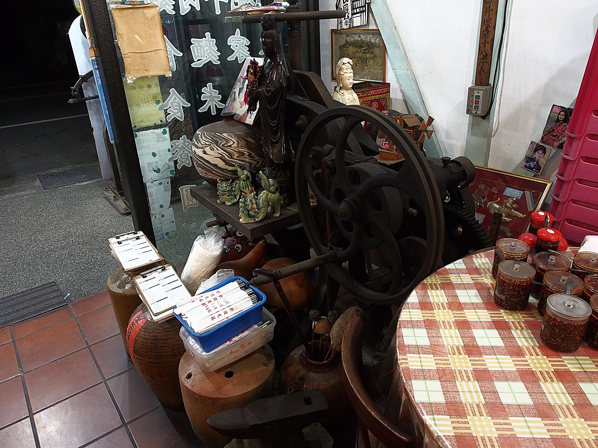 這天是耶誕夜,老闆打算早點打烊,所以把機車和桌椅都推進來了。基本上餐廳本身就是木造老房子,配上滿屋子的老東西真的是剛剛好。