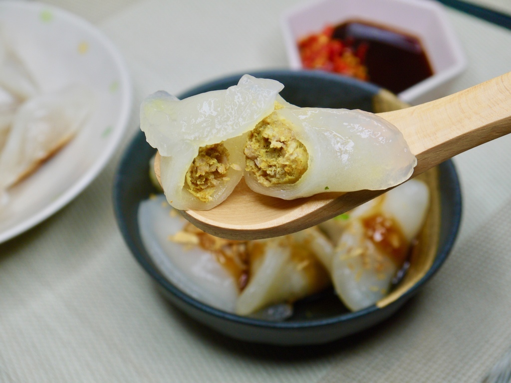 下次煮剝皮辣椒雞湯一定也要加水晶餃,