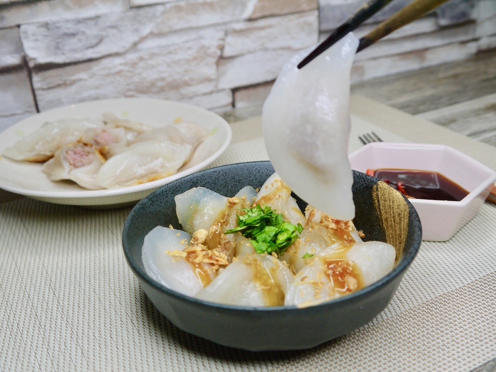 梅乾豬肉水晶餃、塔香菇菇水晶餃(素食)