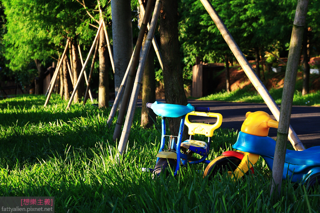 很多小朋友都開心的在草皮上嬉戲,3e cafe還提供了小小三輪車耶XD。