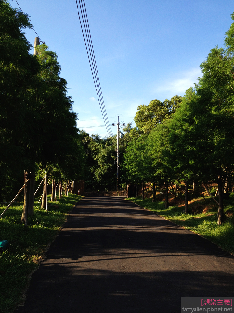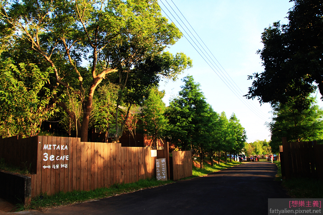 3e cafe的招牌轉進去後先是一段有著綠樹橫列的車道~