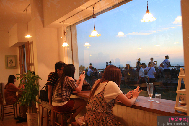 不想在3e cafe室外餵蚊子的話。也可以坐在室內這片大窗前觀賞嚕(結果小吠竟然拼命滑手機XD)。