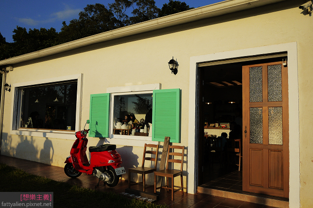 傍晚的3e cafe屋,從外頭看又是另一種味道。