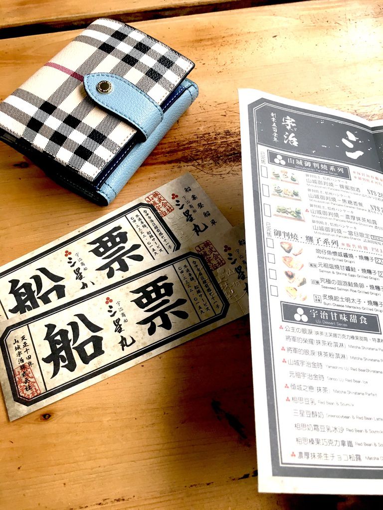 到了門口竟然有排隊人潮,很慶幸自己有先預約. 入內先買船票,可以抵消費用,船票就像入場券一樣,結帳時出示,票根可以保留,很可愛耶! 放在木頭桌子上很有味道.