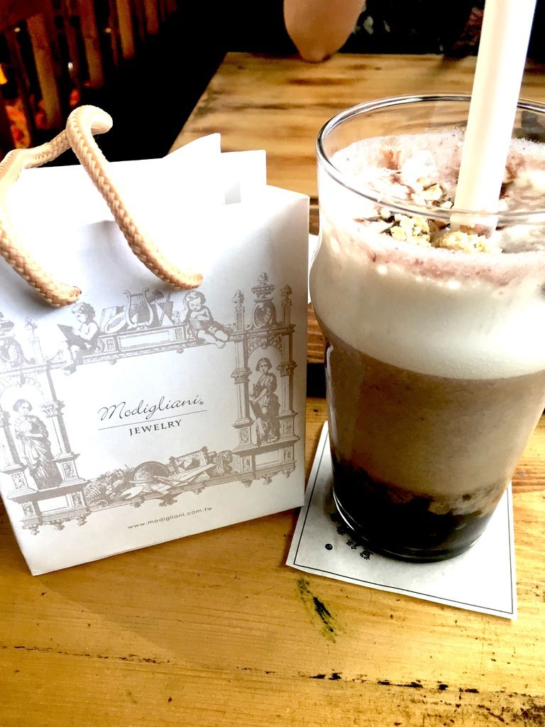 飲料紅豆榛果拿鐵我們以為點了一個很comfort food的會血糖震盪,其實很自然清新,牛奶跟紅豆比例搭配得很清爽,紅豆綿密又可以吃到顆粒.