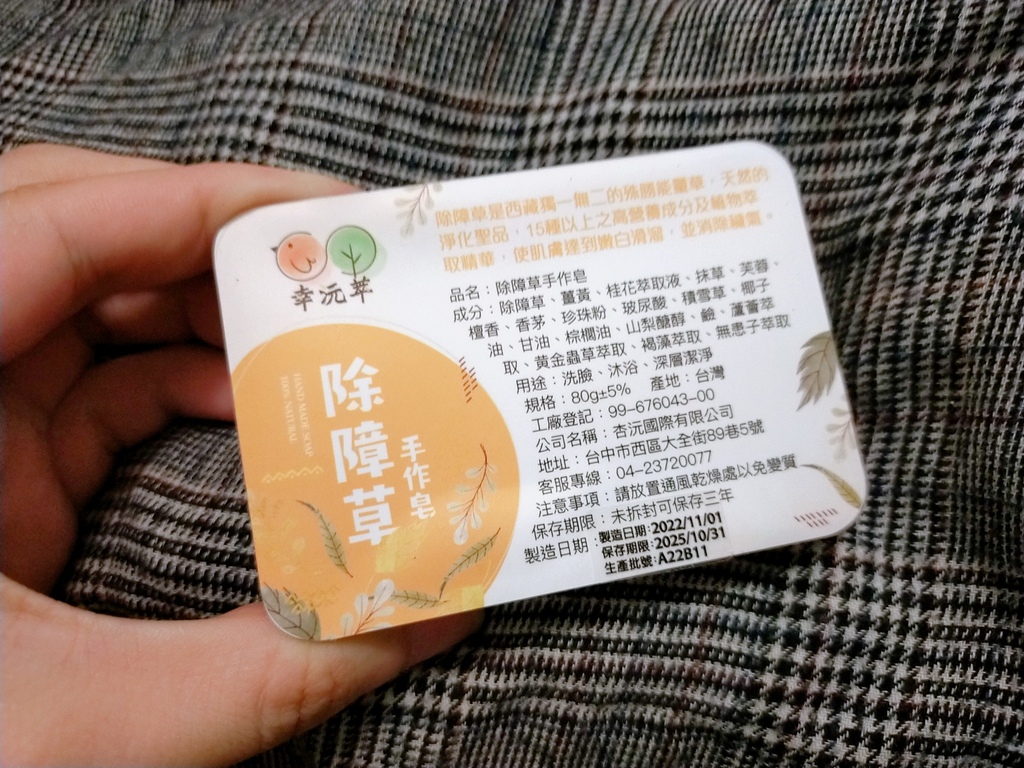 看到幸沅萃美肌皂有推出可以淨化能量並消除疲勞的漢方美容【除障草】,坊間很難找到使用除障草(西藏艾草)製作的手工皂,是幸沅萃的暢銷獨家商品,我就想買來試試看!