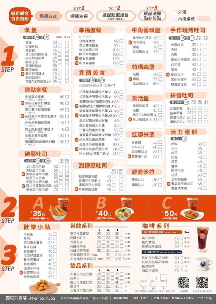 西屯區早午餐推薦-蕃茄村概念店烈美門市優惠資訊 (攝於2023.07)