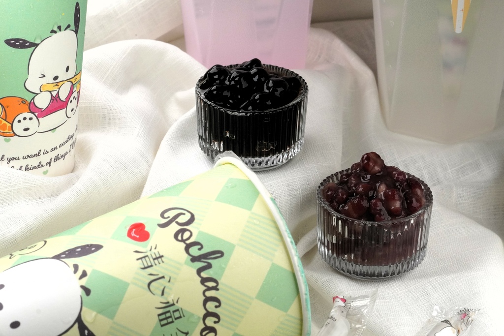 再特寫一下清心福全香甜的紅豆跟Q彈的珍珠給大家看個清楚,這兩種配料小金覺得加在一起肯定也是非常讚,下次有機會我一定要來試試。