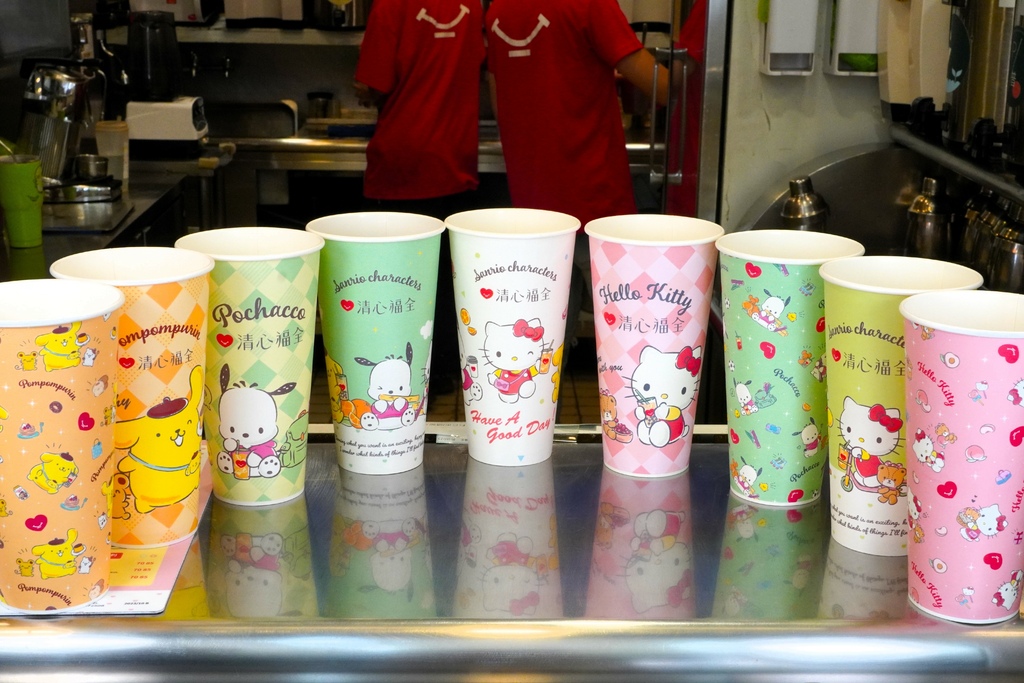 清心福全福林二店地點真的太方便,這天一看到店舖已經佈滿日本三麗鷗家族的形象吸睛度100%,不少人上門買飲料時已經開始詢問什麼時候可以買到超卡哇伊的周邊了。