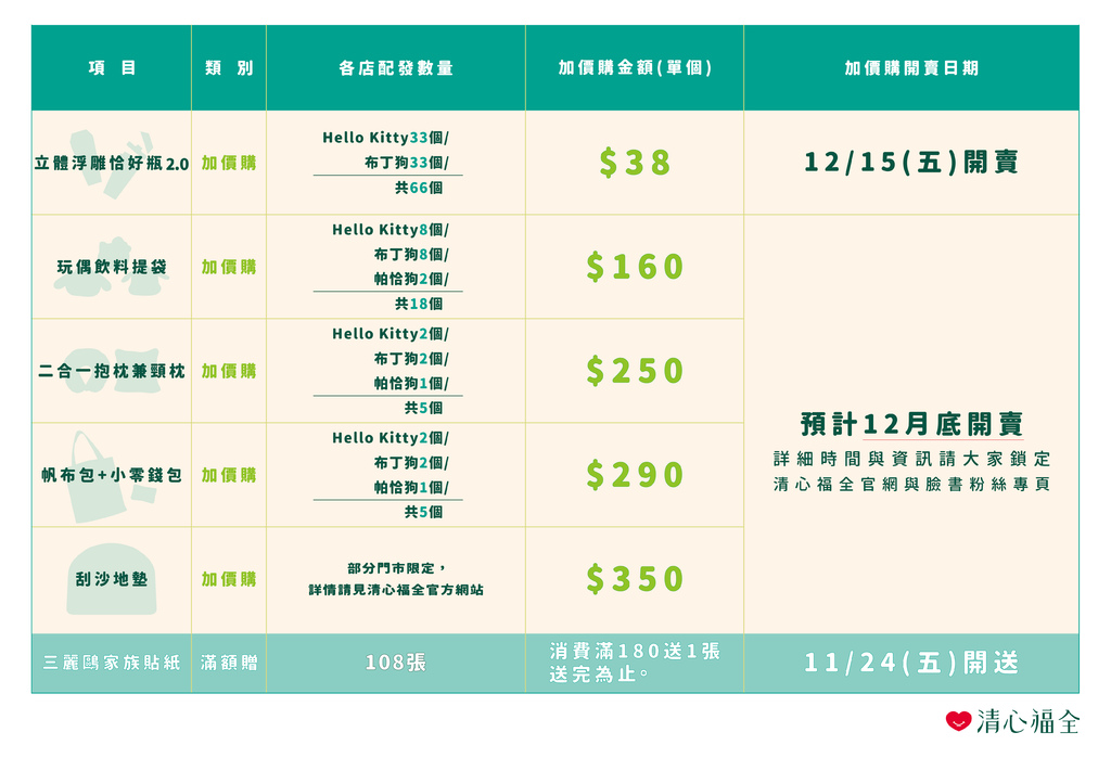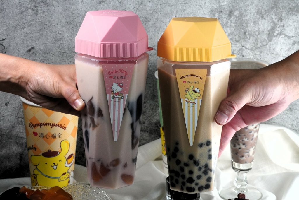 台中飲料推薦。清心福全這次跟超卡哇伊的三麗鷗家族聯名合作,除了九款不同角色的外帶杯之外,還有立體浮雕恰好瓶2.0、玩偶飲料提袋、二合一抱枕兼頸枕、帆布包+小零錢包、刮沙地墊、三麗鷗家族貼紙,超多可愛又實用的週邊商品,當然每家店都是限量推出,喜歡的朋友一定要手刀衝一波啦!