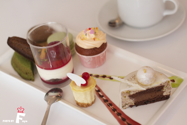 咱們點的下午茶組合上桌喇,有手工餅干、馬卡龍、奶酪、棉花糖、杯子蛋糕,