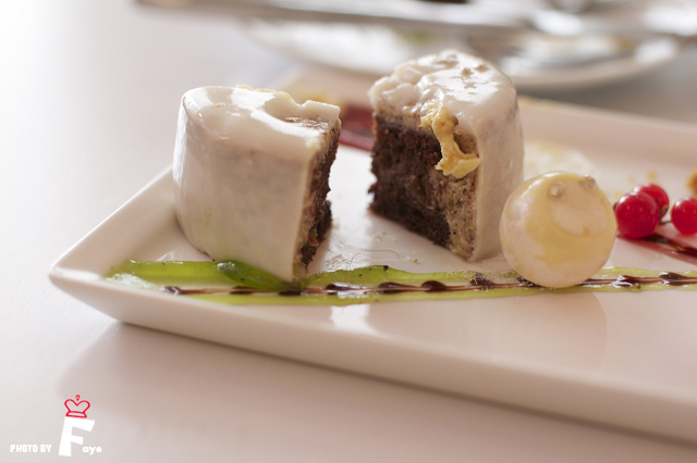 但二個人要分食這塊蛋塊時發現底部有一根可疑毛髮!!!趕緊先拍照存證後請了服務生過來~