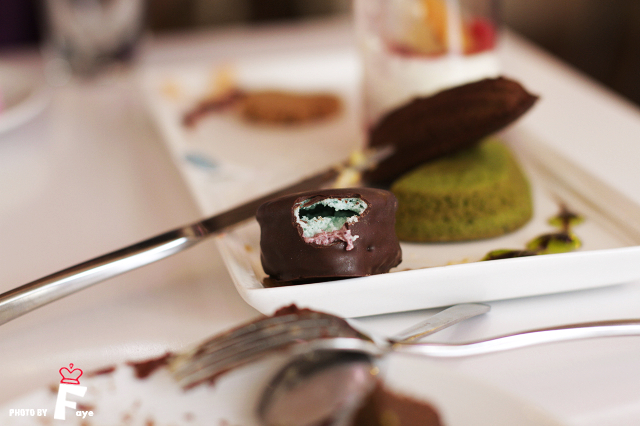 咬開心型馬卡龍後內餡是藍色+紫色耶~~Sweet Emily的主廚會不會太有創意?XD