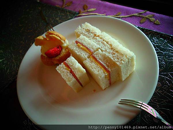 第一層 泡芙與三明治(火腿起司&鮪魚)