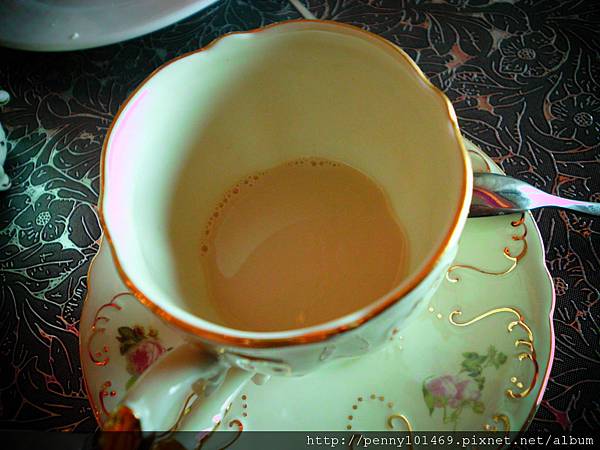 執事問我要不要加奶,就加了一點!!加了奶之後有點可惜茶溫變低也變得較無茶味~