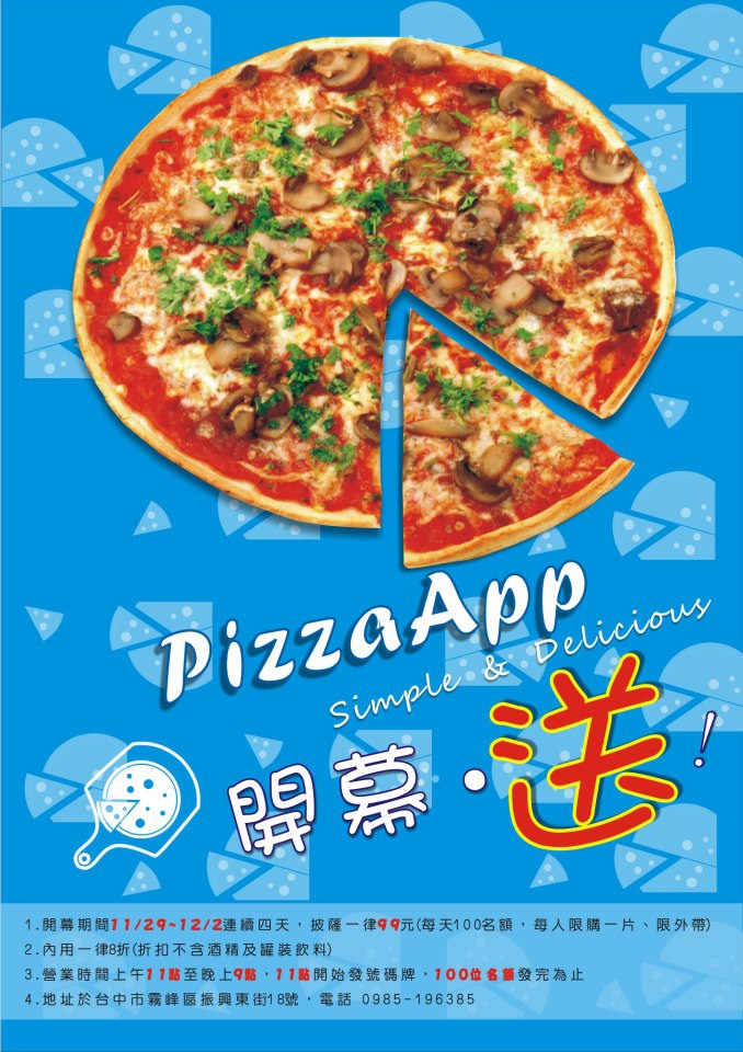 開幕了開幕了! 「PizzaApp歐式窯烤披薩專賣店」在11月29日,也就是今天,開幕瞜~