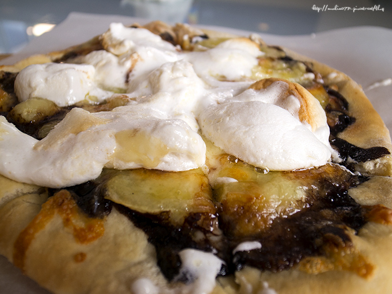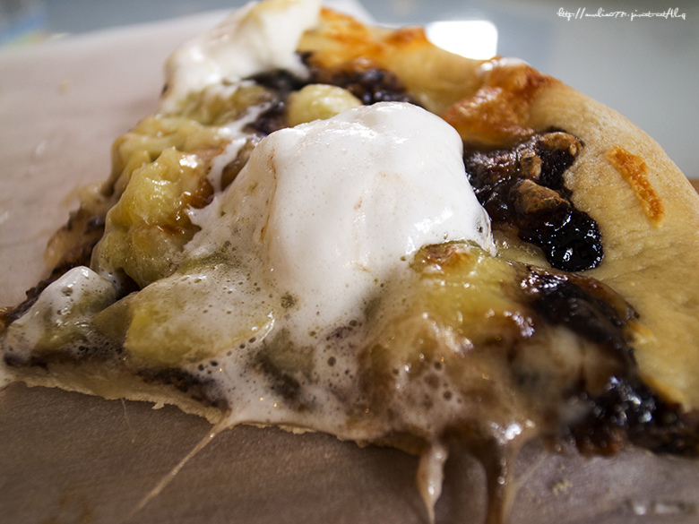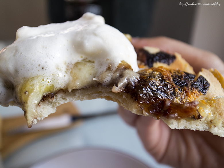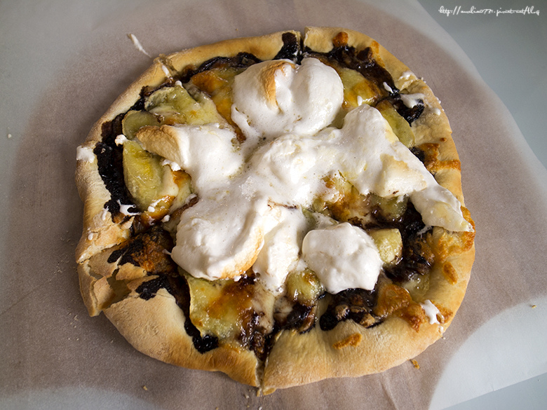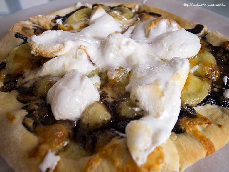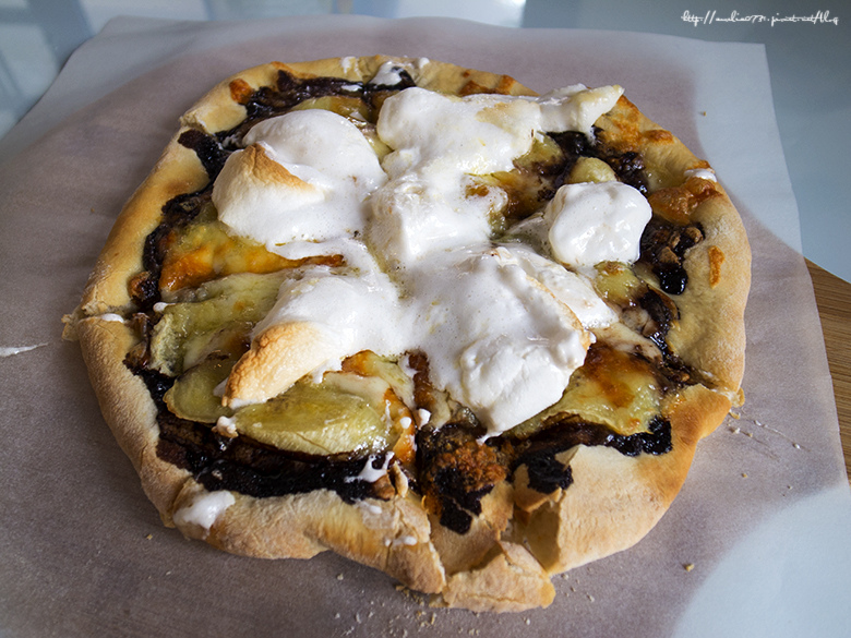 棉花糖融化後我覺得蠻好吃的,跟pizza皮一起吃的話會牽絲,配上一口香蕉,上天堂了~~~