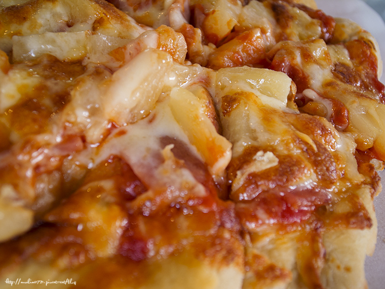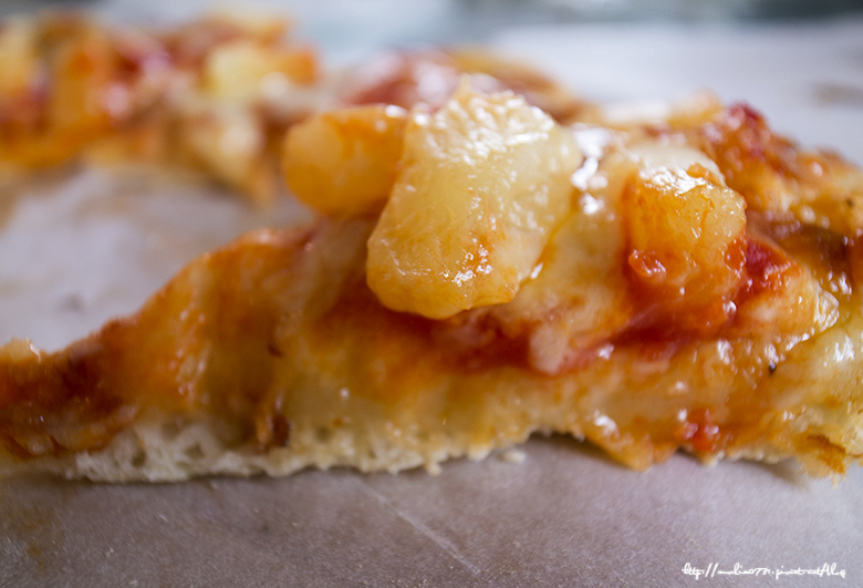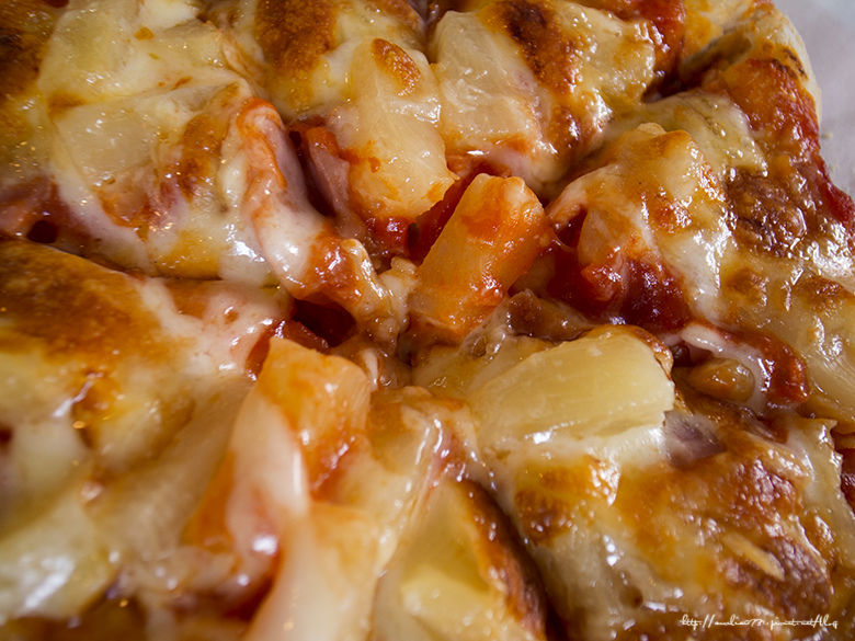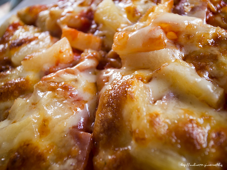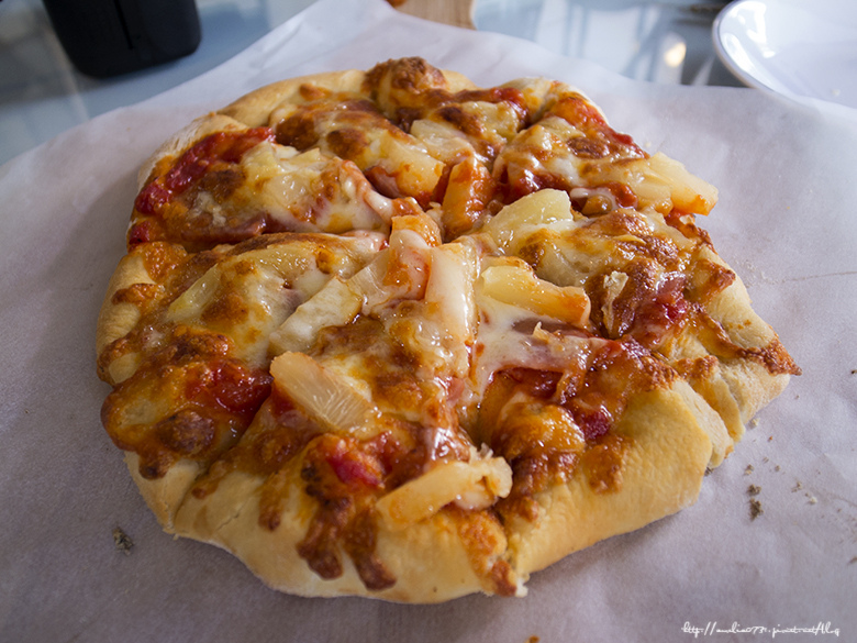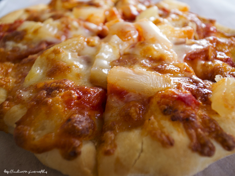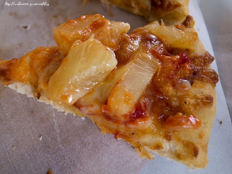 跟上一個的口味比起來就比較沒特色,但也算蠻好吃的~ 就是很夏威夷的PIZZA,哈哈