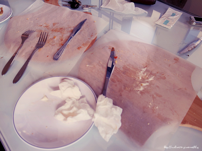 yayaya!!! 來了來了!!! 迫不及待的想開動了,但沒有餐具...只好又叫服務生送上餐盤(這邊又耗了一些時間等刀叉,唉!)