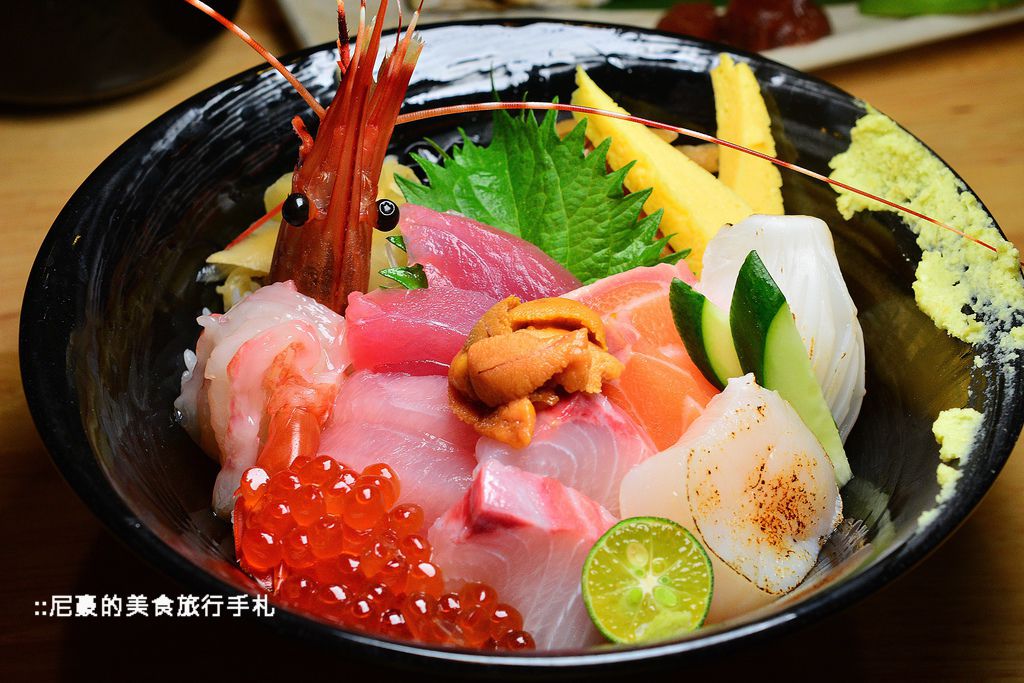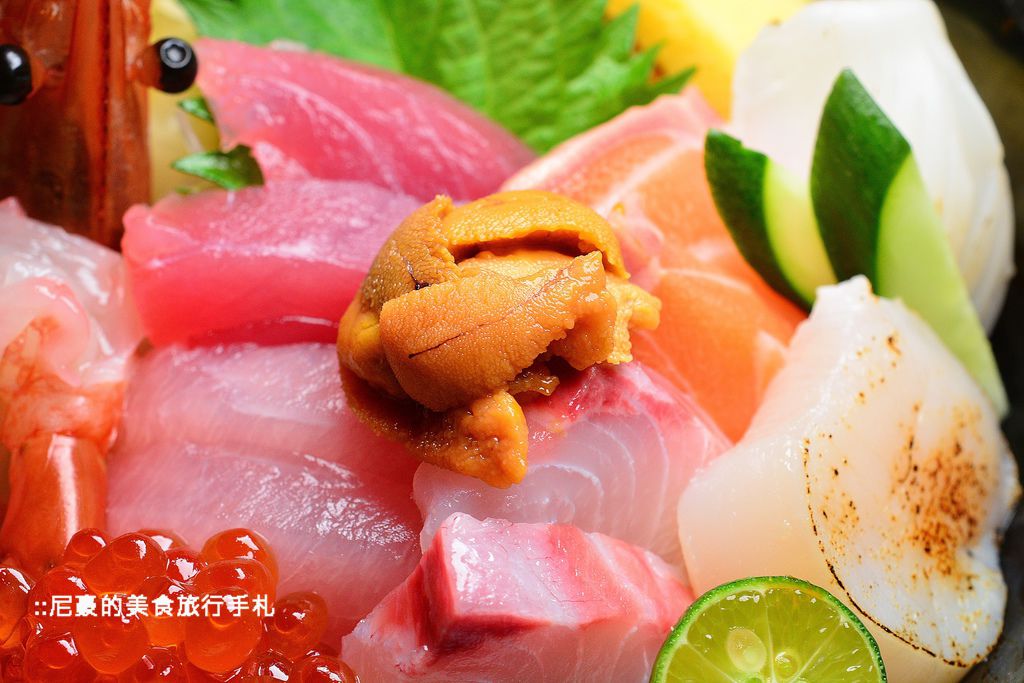 滿滿的生魚片上面還放上了海膽,這碗丼飯實在太豪華了