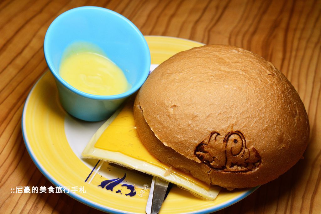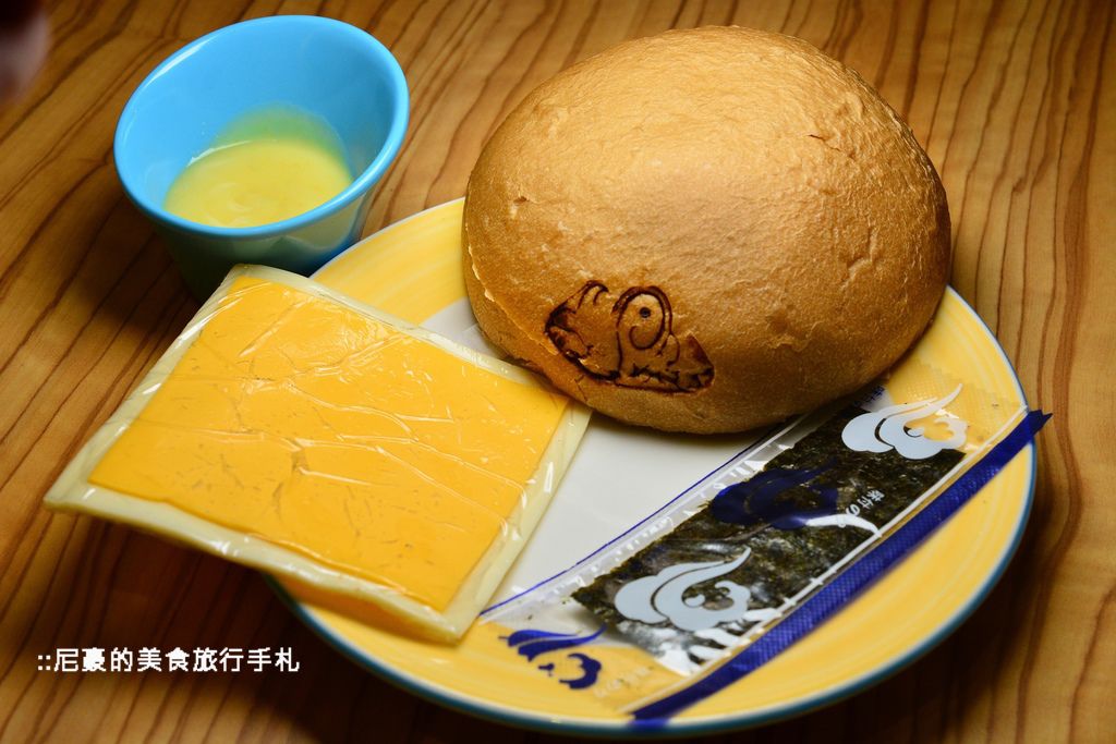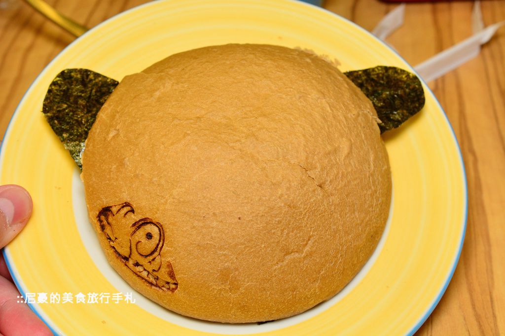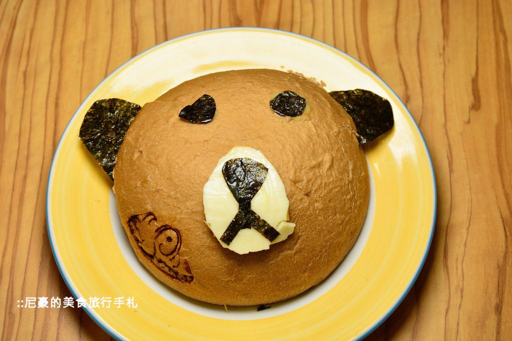 ▲接著再把剛剛DIY完成的熊大麵包蓋上去