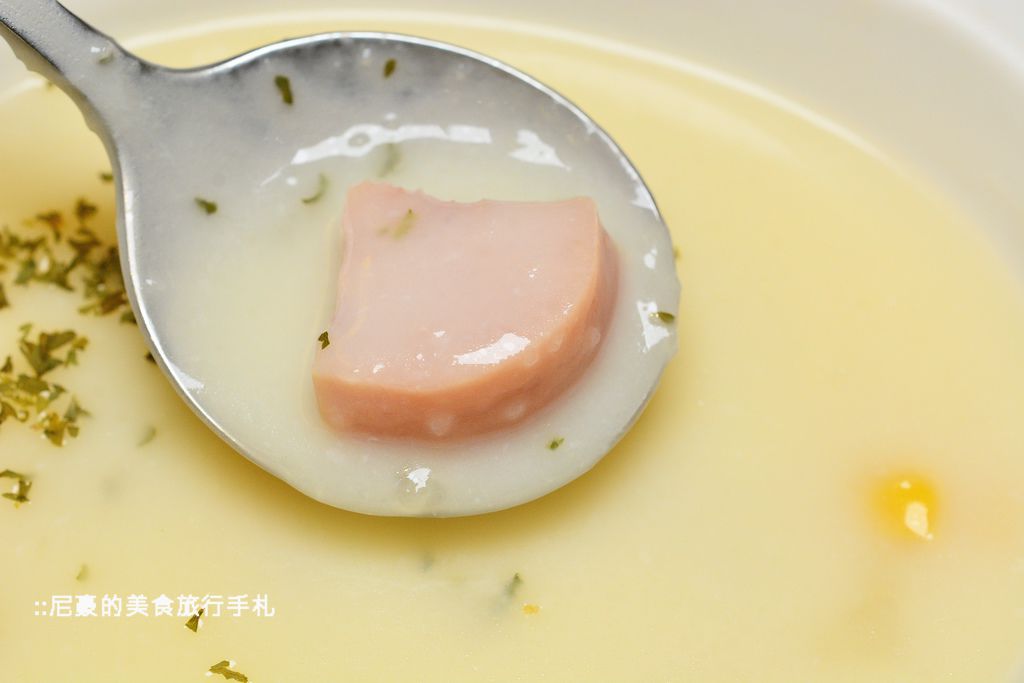 濃湯一般都使用火腿薄片,這裡則是切塊的火腿,誠意十足