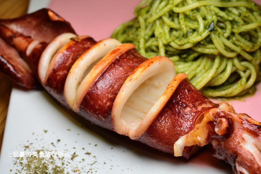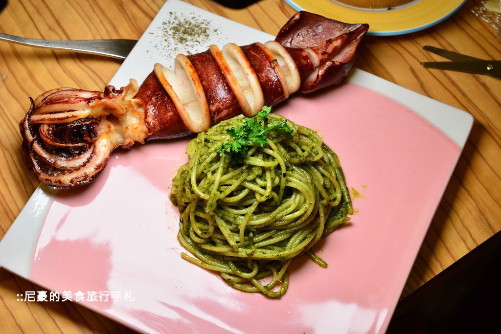 魷物青醬義大利麵也上桌囉,一看到就驚呼
