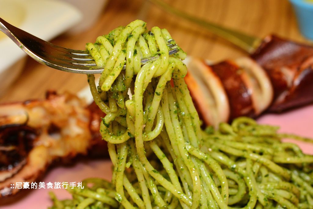 ▲義大利麵則是Q彈麵條帶有淡淡的青醬香氣