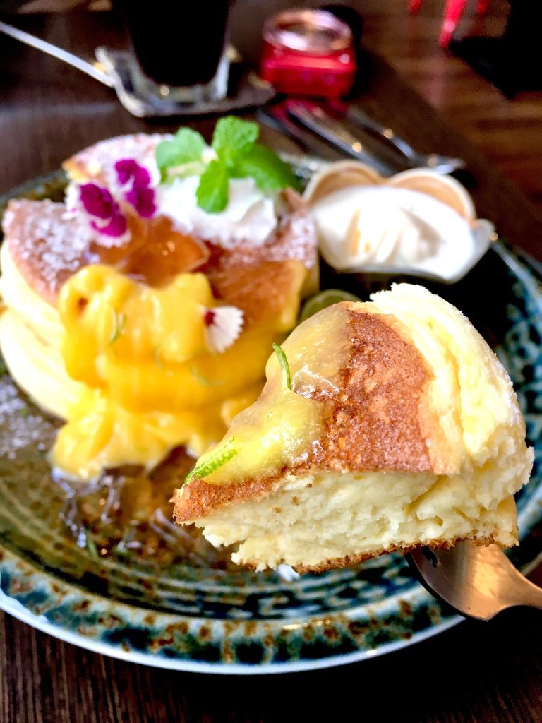 夏日青檸也不遑多讓,金色小瀑布好夢幻。 他的原味厚鬆餅是我吃過麵粉香跟蛋香最飽和的,味道單純可是吃不膩,終於懂我男人一直炫耀的入口即化的感覺。 一定要試試看搭配愛玉,同時咀嚼兩種不同的軟嫩。