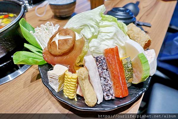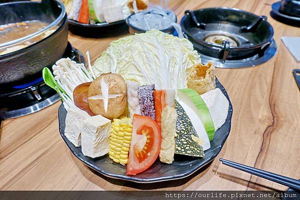 菜盤,出雲鍋物的菜盤料都還滿新鮮的,讓我最歡喜的是米血部份是鵝血糕喔,不是一般工廠用機器做的假米血,我的菜盤有先詢問過是否有大白菜可以做更換,如果有大白菜看能不能讓我換,沒有大白菜或是不能更換的話就算了,沒想到可以更換太好了。