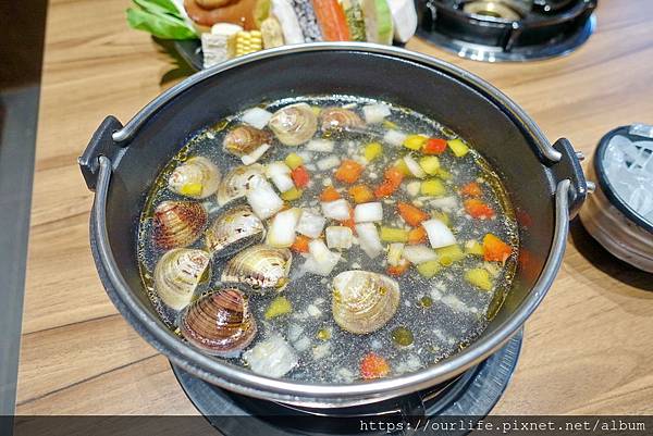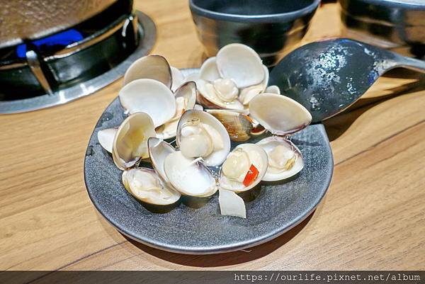 出雲鍋物的卜卜蜆鍋,其實這鍋是源自澳門贏粥到,到澳門必吃的卜卜蜆鍋吶,去澳門一次吃過就愛上了,之後到澳門一定都會去吃卜卜蜆鍋,高雄也有賣這一鍋,但高雄對我而言太遠了,台中有當然就是先吃再說。