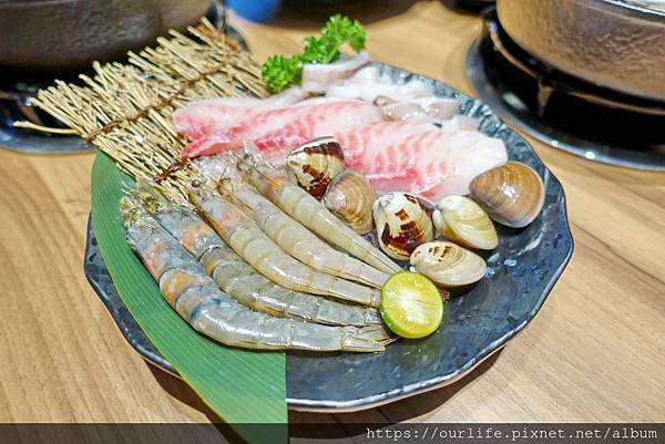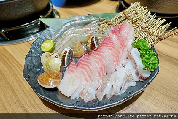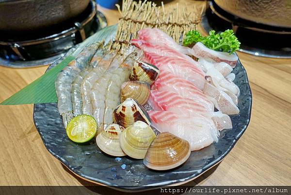 出雲鍋物的海鮮盤,這一盤單點只要200元價格很可以啊,食材都很新鮮,蛤蜊超大顆的,鯛魚給朋友吃我沒吃,透抽也很新鮮。