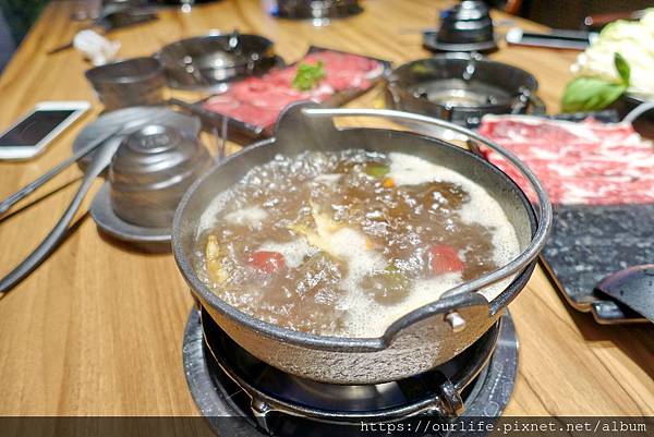 我們沒有吃完,在吃火鍋時,好幾個朋友虎視眈眈的燒酒雞鍋要打包,大家都晚一步了,名鍋有主了,吃完出雲鍋物我快馬加鞭把燒酒雞送到朋友家給朋友補一下,在朋友家燒酒雞一打開就聞到濃濃的味道,開火煮滾時朋友老公喊說好濃喔好濃喔,我看朋友老公的表情應該是很滿意,結果吃時朋友老公滿意的不得了,還好有滿意還好沒漏氣,要不我從北屯帶兩光雞湯殺到東區就是個笑話,朋友跟老公倆人對出雲鍋物的燒酒雞鍋是滿意的不得了,我們吃過最濃最好吃的燒酒雞鍋啊。。。
