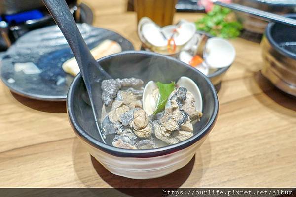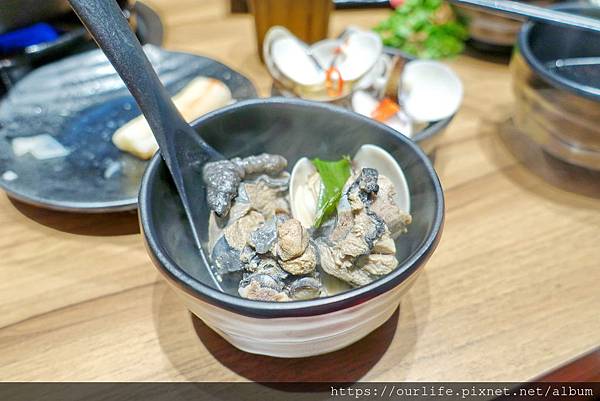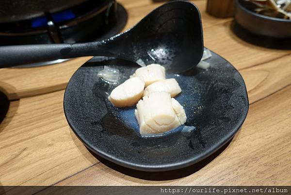 干貝煮太久了,口感有點硬,我忘了我有丟干貝在煮,出雲鍋物干貝好吃,很清甜口感還滿Q彈的。。。