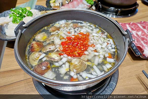 我又加了很多洋葱一起煮,出雲鍋物本身的蜆湯有蛤蜊清甜味道,但我再加洋葱 煮湯更加清爽甜度更明顯。