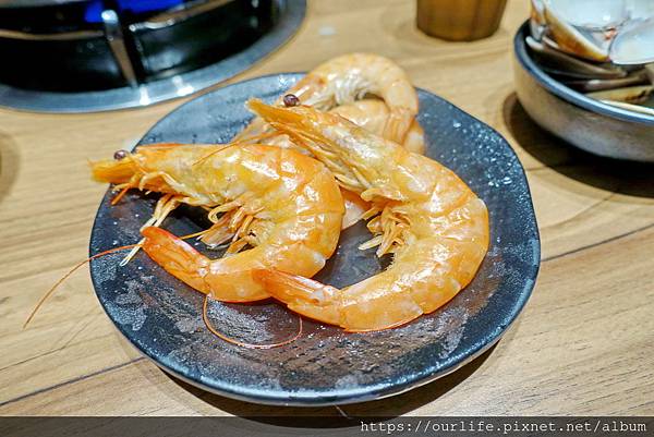 煮蝦子了,出雲鍋物的蝦子是有蝦膏的,而且蝦子很新鮮,蝦膏清甜蝦肉Q彈,一份有2大2中1小的蝦子,共5隻。