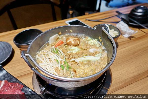 出雲鍋物的牛肉還滿大片的,但我太粗魯挾到分離,肉片還滿有厚度的。